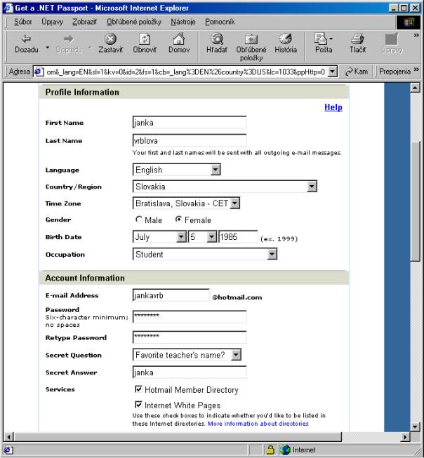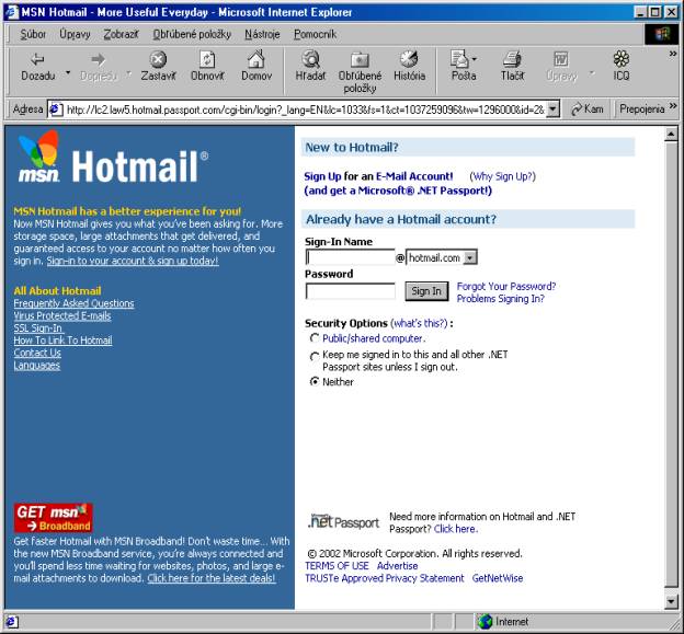 e-mail na internetovej adrese www.hotmail.com je veľmi jednoduché. Stačí