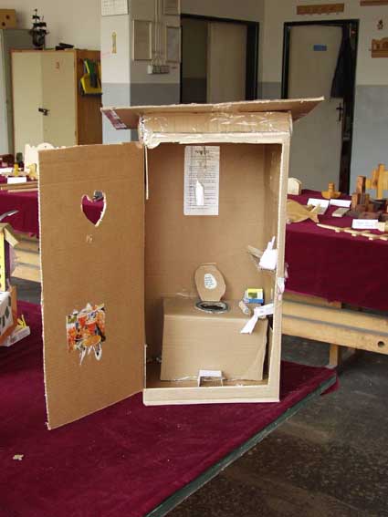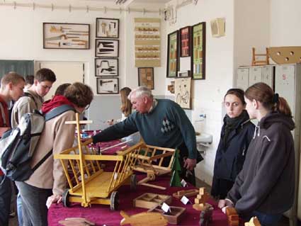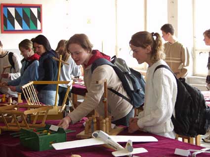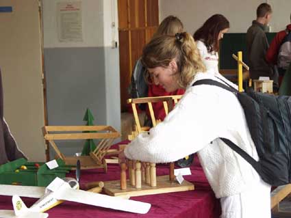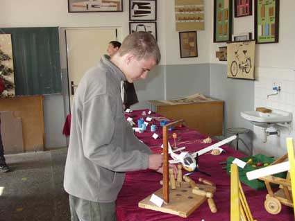 Výstava ručnej tvorivosti. To bola paráda! Pán učiteľ Baláž to vymyslel ešte niekedy v zime a celá škola sa pol roka snažila pripravovať exponáty na výstavu, ktorú sme nakoniec koncom apríla a začiatkom mája usporiadali v školských dielňach. Nakoniec sme vystavili asi 150 exponátov našich žiakov z 1. a 2. stupňa. Exponáty sme doplnili aj prácami žiakov, ktorí už našu školu nenavštevujú, ale ich práce stoja za pozornosť. Záujem bol veľký a hneď prvých návštevníkov z 9.B triedy vyfotografoval pán učiteľ Stupák. Každá trieda exponáty hodnotila a víťazné práce Vám predstavujeme na fotografiách